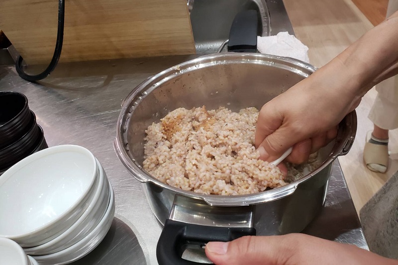 クッキングスクールの会場は、心斎橋商店街の入り口にある、「GENMAI CAFE」